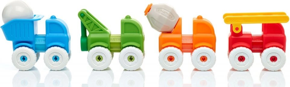 Monta el camión de bomberos, el camión de carga, la hormigonera y la cargadora, o intercámbialos entre sí. La variedad de piezas desarrolla la imaginación y el juego temático.