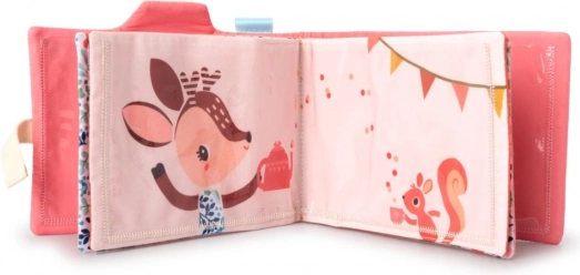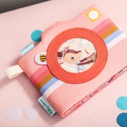 El álbum tiene 10 páginas de tamaño 15 × 18 cm con superficie lavable, por lo que resiste fácilmente las caricias diarias de las manitas infantiles. El material de 100% poliéster y punto acrílico es suave, ligero y agradable al tacto. Apto a partir de 9 meses.