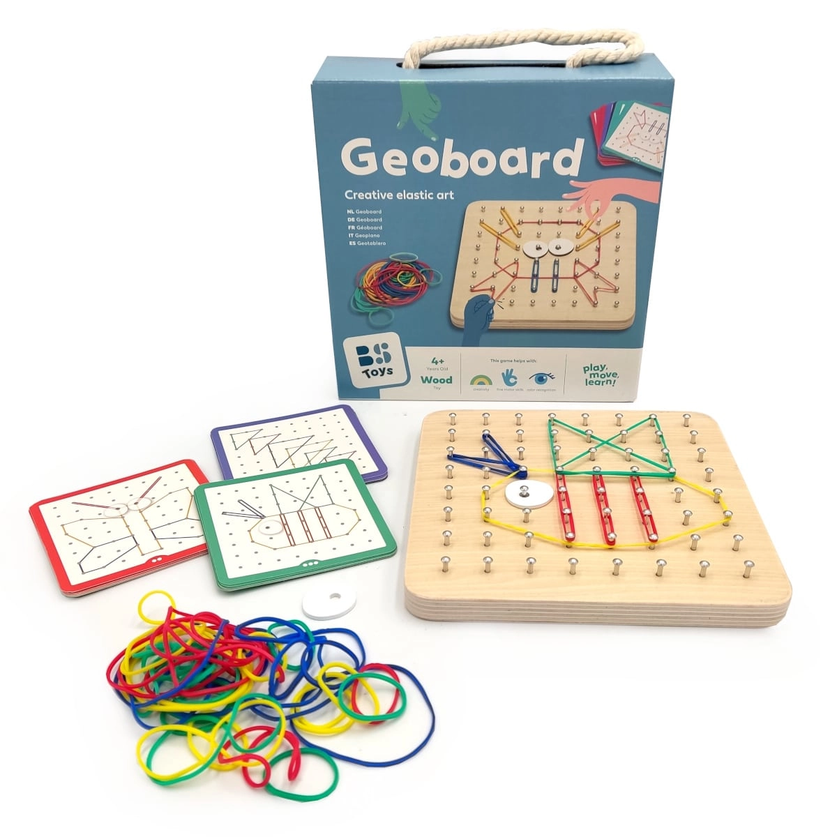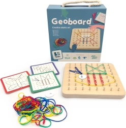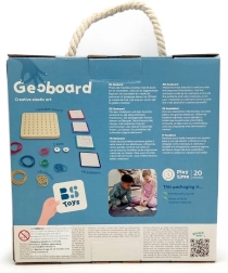 Geoboard es ideal tanto para el hogar como para el uso escolar, donde puede apoyar magníficamente la creatividad, la concentración y la paciencia de los niños. Es fácil de transportar gracias a su práctico embalaje con asa, lo que lo convierte en un juguete ideal para llevar de viaje.