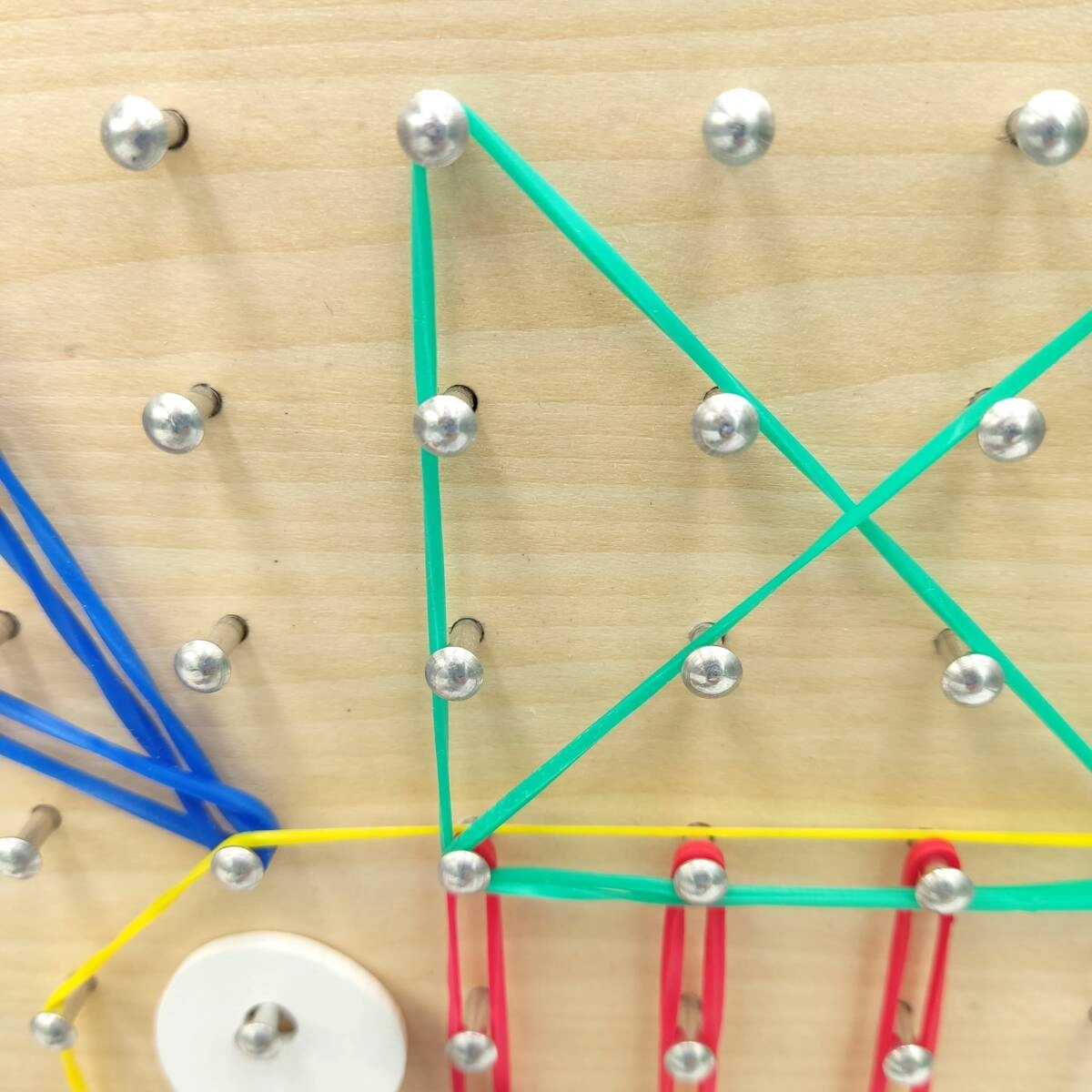 Los niños pueden crear formas geométricas básicas, aprender simetría y patrones, o diseñar imágenes únicas. El Geoboard también es una excelente herramienta para enseñar conteo y medición.