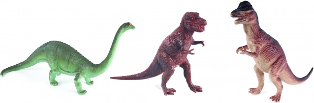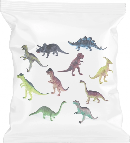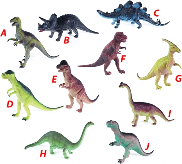 El set incluye diez especies diferentes de dinosaurios en varios colores, que sorprenderán a cualquier niño por su diversidad.