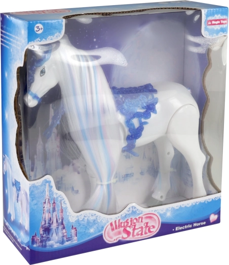 Presentamos el caballo eléctrico de la colección Reino de Invierno, el compañero perfecto para los pequeños amantes de los cuentos y la fantasía. Este caballo mágico ofrece las siguientes funciones: