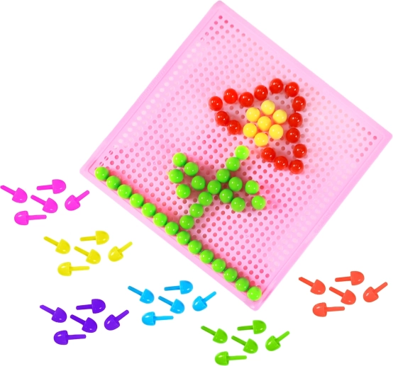 El mosaico creativo con clavijas encantará a todos los pequeños creadores. Los niños pueden componer imágenes según su imaginación y desarrollar la motricidad fina y la paciencia. El paquete incluye 210 clavijas en 6 colores y una práctica base de inserción.