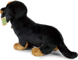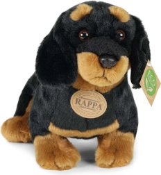 Este perro salchicha de peluche en posición sentada conquistará el corazón de niños y adultos. La felpa suave al tacto, combinada con detalles de color fieles, ofrece un aspecto realista e invita a abrazos y juegos de imaginación. El relleno de botellas PET recicladas está completamente certificado y al tacto es indistinguible del relleno estándar.