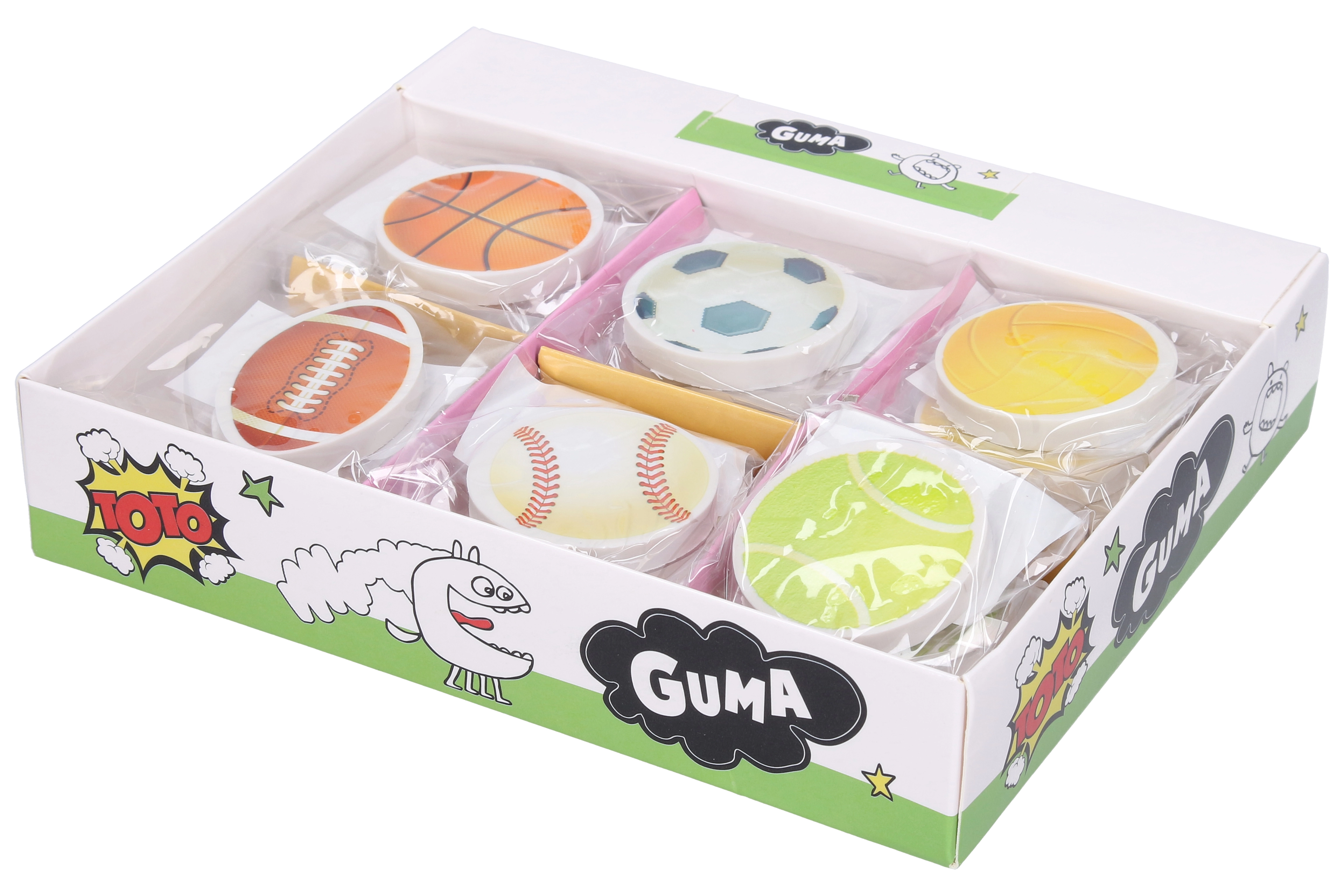 Práctico accesorio escolar para escribir y dibujar a diario. Esta goma de borrar con motivo deportivo elimina de forma fiable las marcas de grafito y deja el cuaderno limpio. Gracias a sus dimensiones compactas, cabe en el estuche y en el escritorio. Enviamos las variantes según la disponibilidad actual en almacén; puede indicar la variante deseada en la nota del pedido.