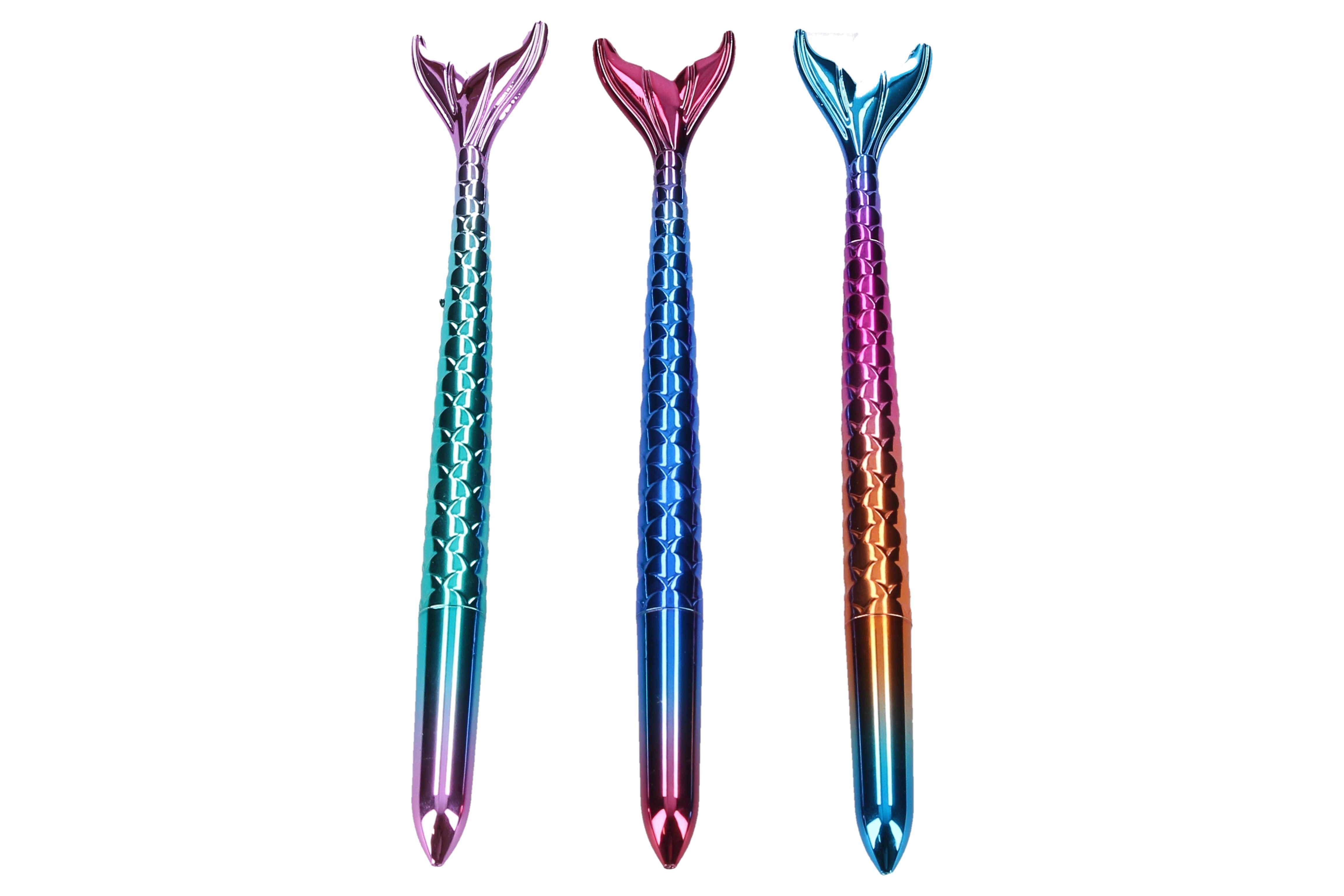Elegante bolígrafo con forma de sirena para escribir en la escuela y en casa. Ofrece un agarre cómodo y una escritura fluida con tinta azul. Su diseño original encantará a niños y amantes de los motivos marinos.