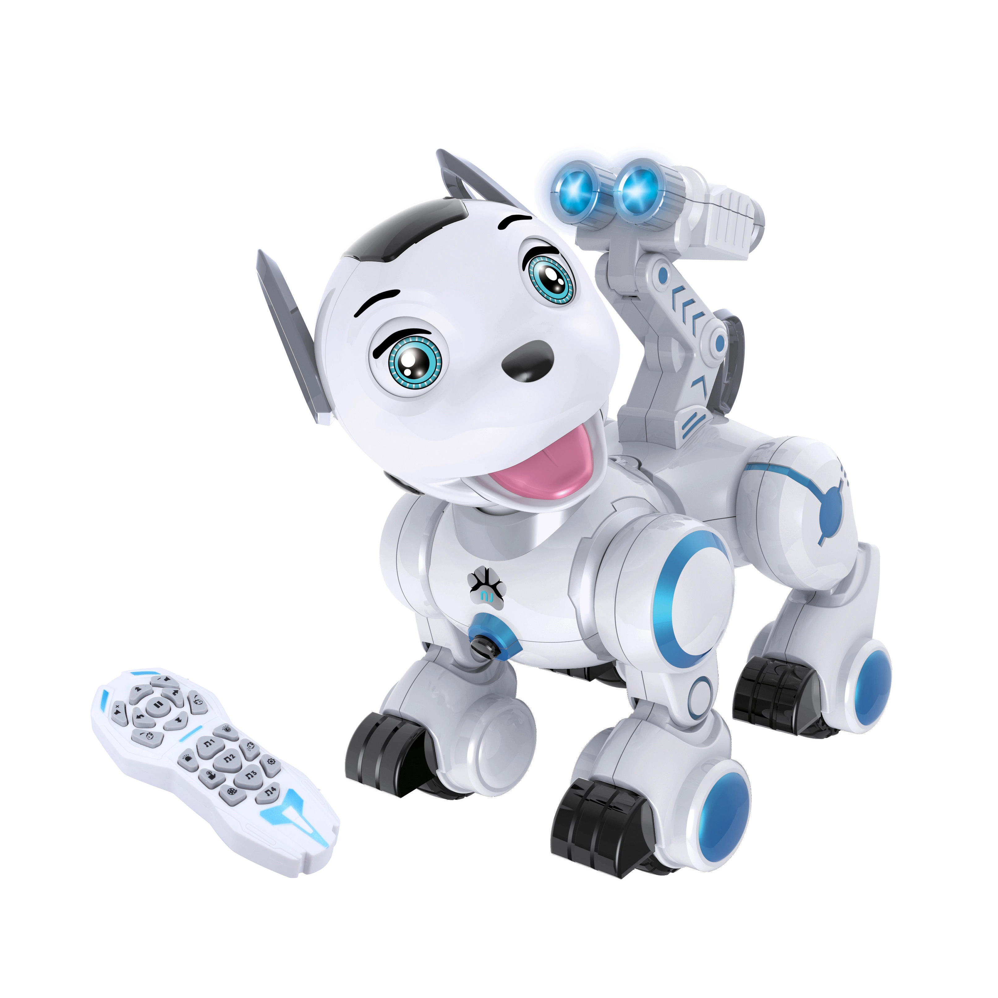 El manejo es sencillo e intuitivo: llévalo a explorar los alrededores, practica coreografías de baile o vigilad juntos la “base secreta”. La práctica carga por USB ahorra tiempo y dinero; el pack de baterías del perro está incluido. El mando utiliza 2× pilas AAA (no incluidas).