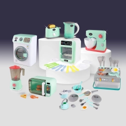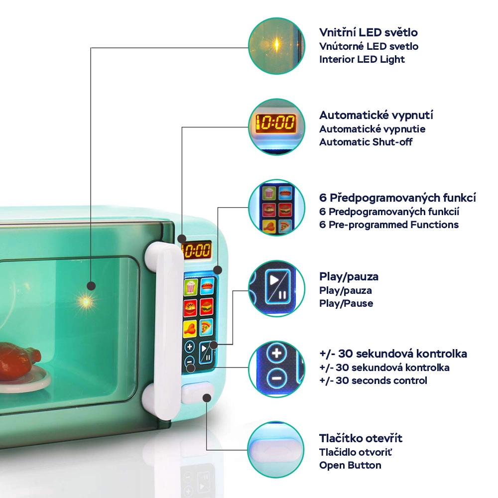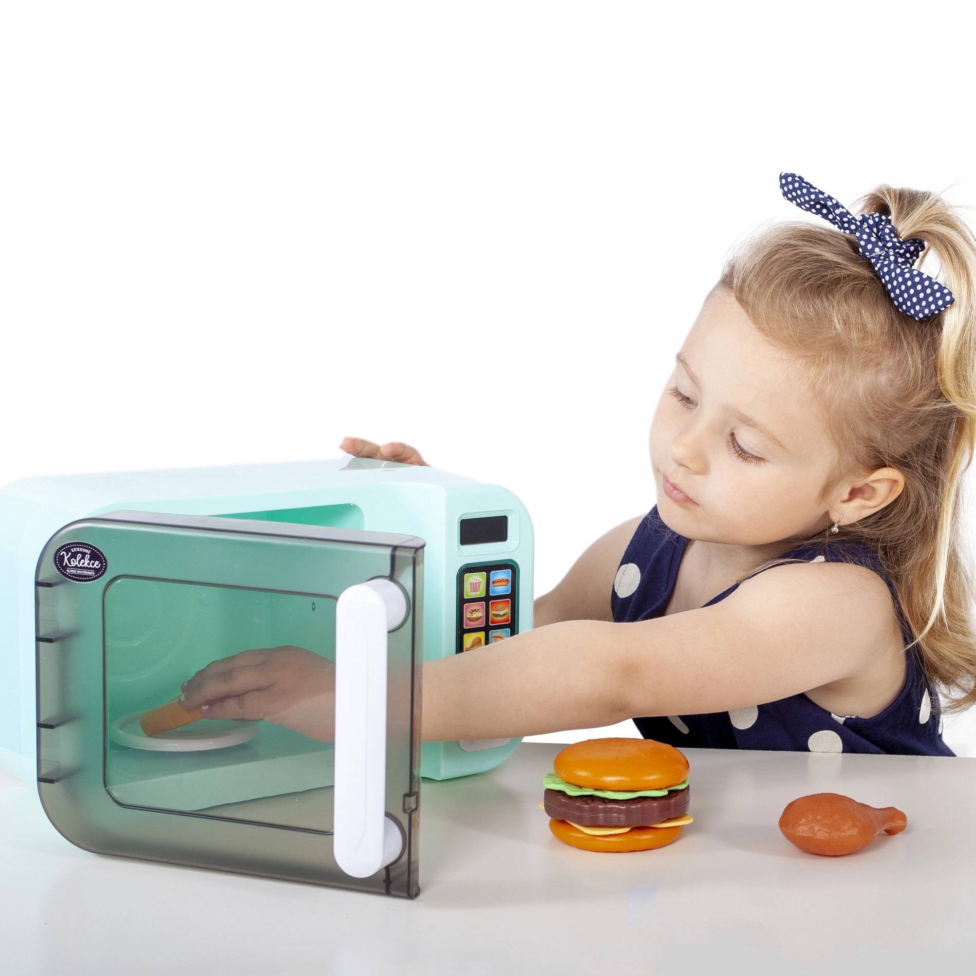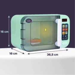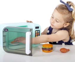 Este elegante microondas infantil es el complemento ideal para cualquier cocinita. Al activar un programa, el plato interior empieza a girar, el microondas se ilumina y emite sonidos como un electrodoméstico real. Gracias al panel táctil, los niños “eligen” fácilmente los programas y aprenden los fundamentos de las tareas de cocina jugando.
