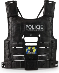 - Chaleco policial con inscripciones en checo: diseño cómodo y resistente para horas de juego.