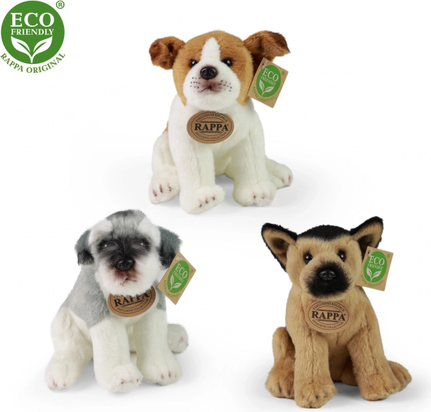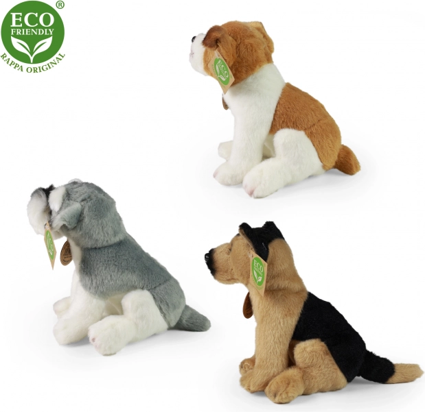 Descubre un compañero suave para la cama y para llevar de viaje. Este perrito de peluche sentado está disponible en tres variantes adorables y, gracias a su material de calidad, mantiene la forma incluso después de largos abrazos. El relleno de botellas PET recicladas es totalmente seguro, al tacto indistinguible del relleno convencional y certificado para niños.