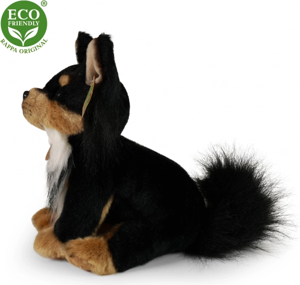 El adorable perro de peluche chihuahua alegrará a cualquier niño y amante de los animales. Está hecho de peluche de alta calidad, tiene un acabado realista y, gracias al relleno ECO‑FRIENDLY de botellas PET recicladas, es respetuoso con la naturaleza. Ideal como regalo y compañero para la cama.