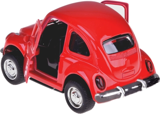 Descubre la forma icónica del clásico escarabajo en una resistente construcción metálica. Los detalles realistas, las puertas abiertas con vista al interior y los efectos de luz y sonido lo convierten en el cochecito perfecto para el juego diario y también como un accesorio con estilo para la colección.