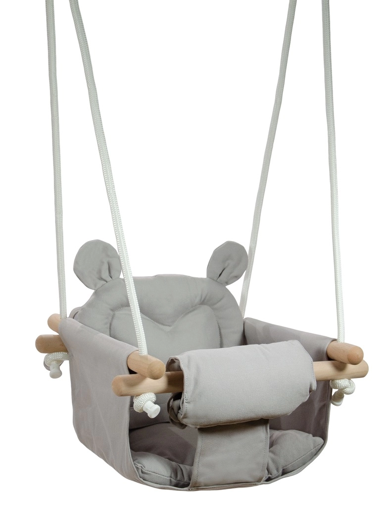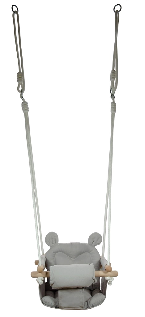 Este columpio infantil es una opción ideal para un descanso activo y momentos llenos de juego. La estructura está fabricada con resistente madera de haya de aspecto natural, mientras que el asiento es de algodón 100% suave, amable con la piel.