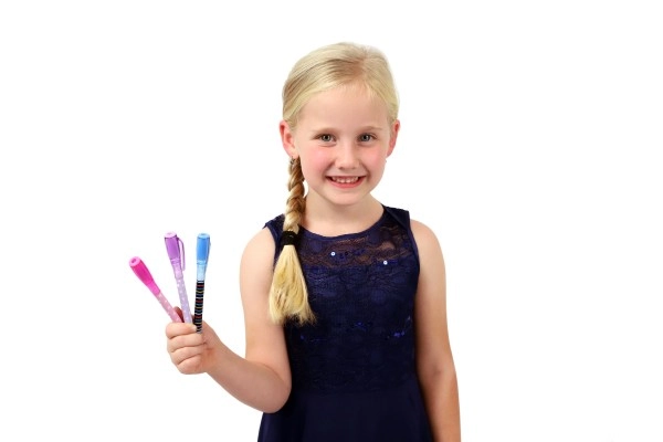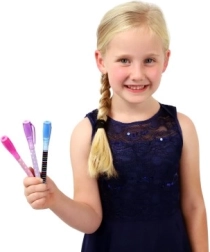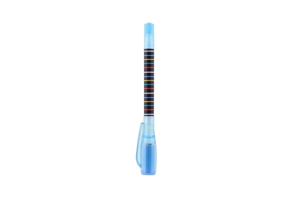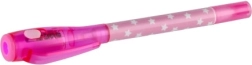 Descubre la magia de la escritura secreta. Un lado del bolígrafo sirve como bolígrafo clásico para notas diarias, el otro escribe con tinta invisible que se ilumina al exponerla a la luz UV. Gracias a su tamaño compacto de 15 cm, se adapta perfectamente a la mano y al estuche escolar.