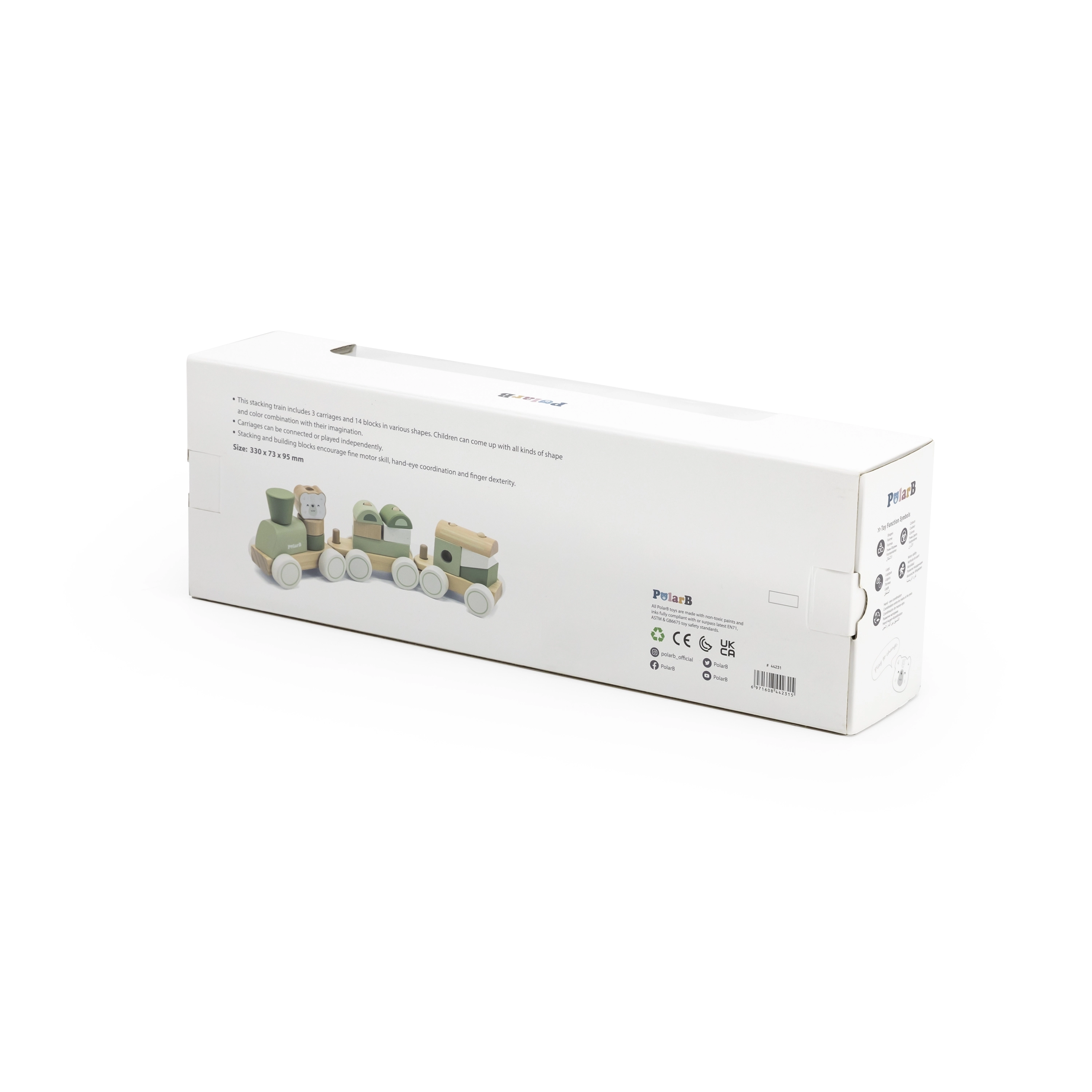 El tren de madera de la marca Polar B es un juguete divertido que aporta alegría y fomenta la creatividad infantil. Consta de tres vagones y 14 bloques de diferentes formas. Gracias a la imaginación de los niños, se pueden crear diversas combinaciones de formas y colores, lo que potencia sus habilidades motoras.