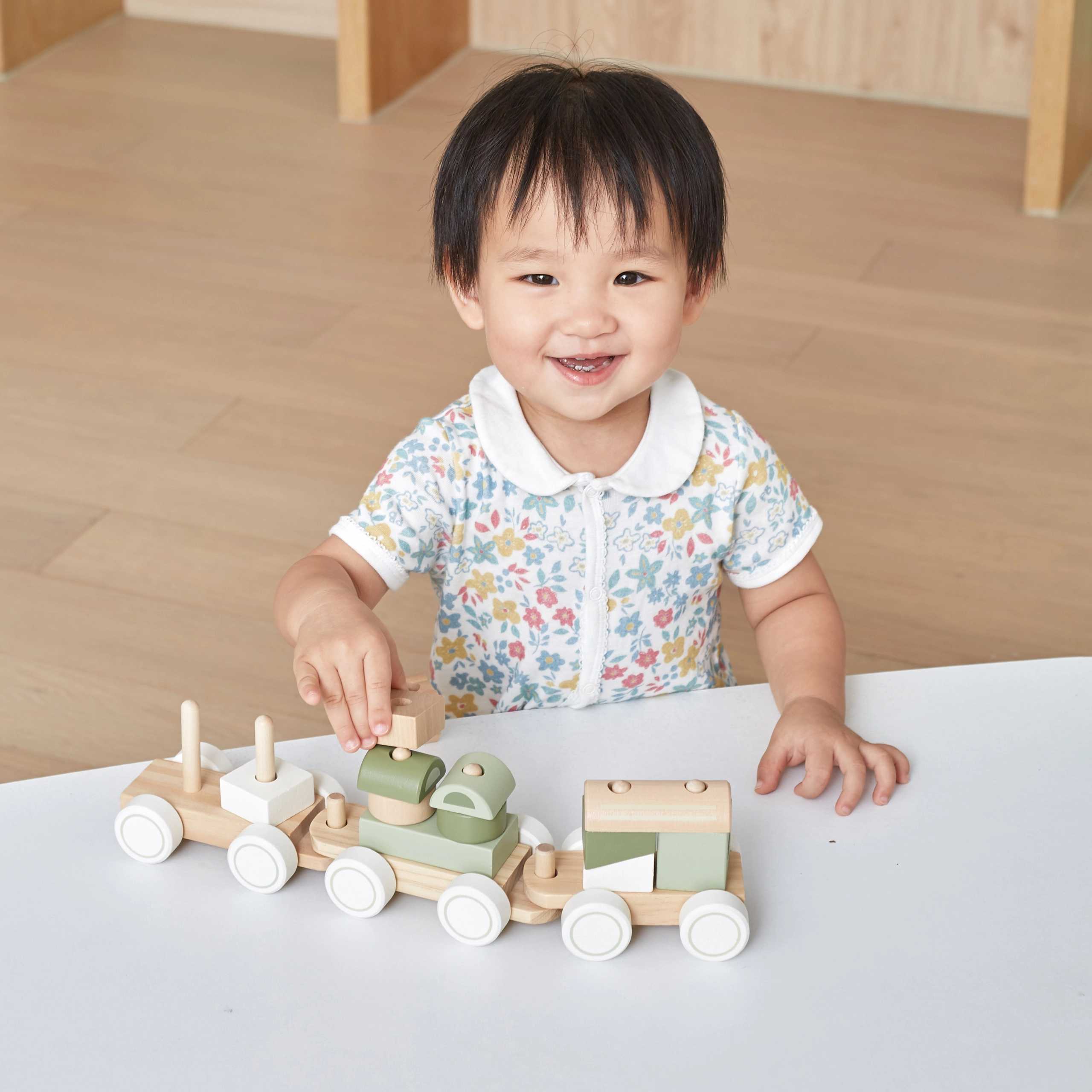 El tren de madera de la marca Polar B es una forma perfecta de fomentar la creatividad y las habilidades infantiles. El tren incluye tres vagones conectados y 14 bloques de colores con diferentes formas. Los niños pueden montar y desmontar los bloques, reforzando así su coordinación mano-ojo.