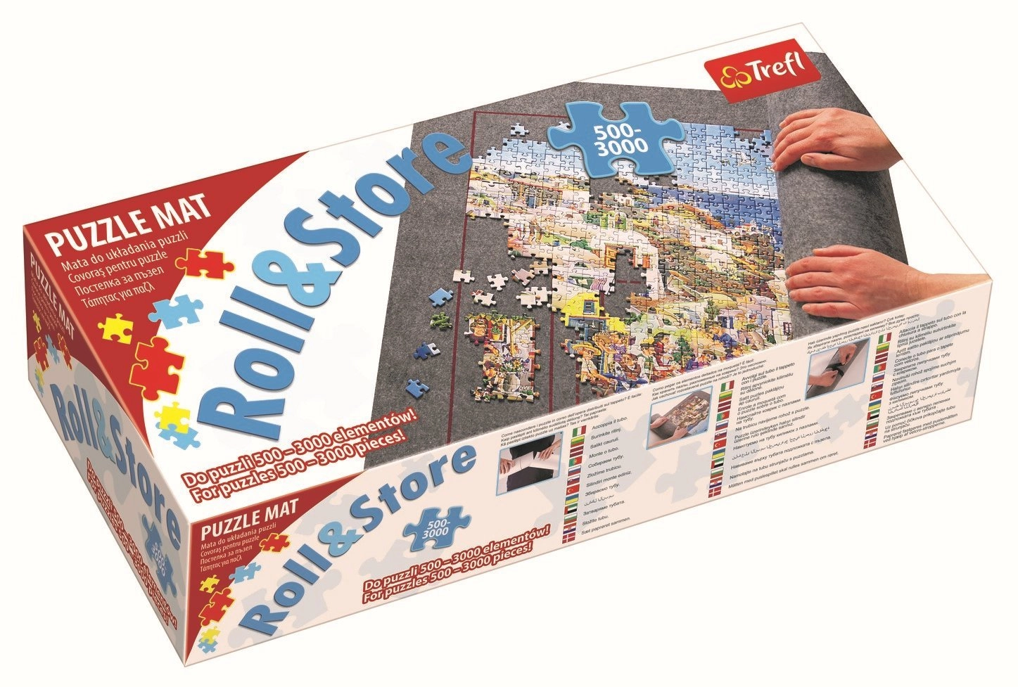 Disfruta de un montaje cómodo con la práctica base enrollable para puzles TREFL. La superficie de fieltro evita que las piezas se deslicen y ofrece espacio suficiente para clasificar y construir grandes motivos. Al terminar, simplemente coloca el tubo sobre la base, enrolla y asegura con los velcros: el puzle a medio hacer permanecerá intacto hasta la próxima vez.