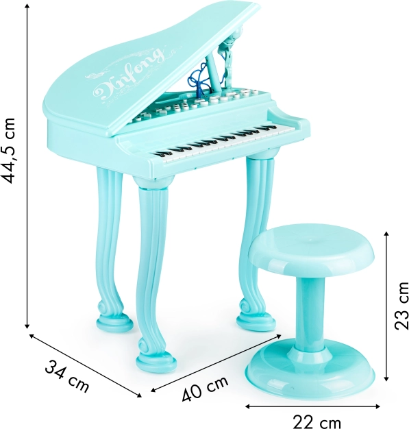 Presentamos un piano infantil que permitirá a tus hijos entrar en el mundo de las melodías y componer sus propias piezas. Este juguete parece un instrumento real e incluye un taburete para que tu pequeño artista se siente cómodamente frente a las teclas. El piano se convertirá rápidamente en el favorito de la casa y el salón se transformará en una sala de conciertos.