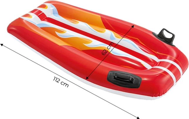 La tabla de surf INTEX es excepcionalmente ligera y cualquier niño podrá transportarla cómodamente sin problemas. Está equipada con dos asas resistentes que ayudan a mantener el equilibrio, lo que permite que el niño nade tanto tumbado boca abajo sobre la tabla como sujetándola con las manos, entrenando así los movimientos y los músculos de las piernas.
