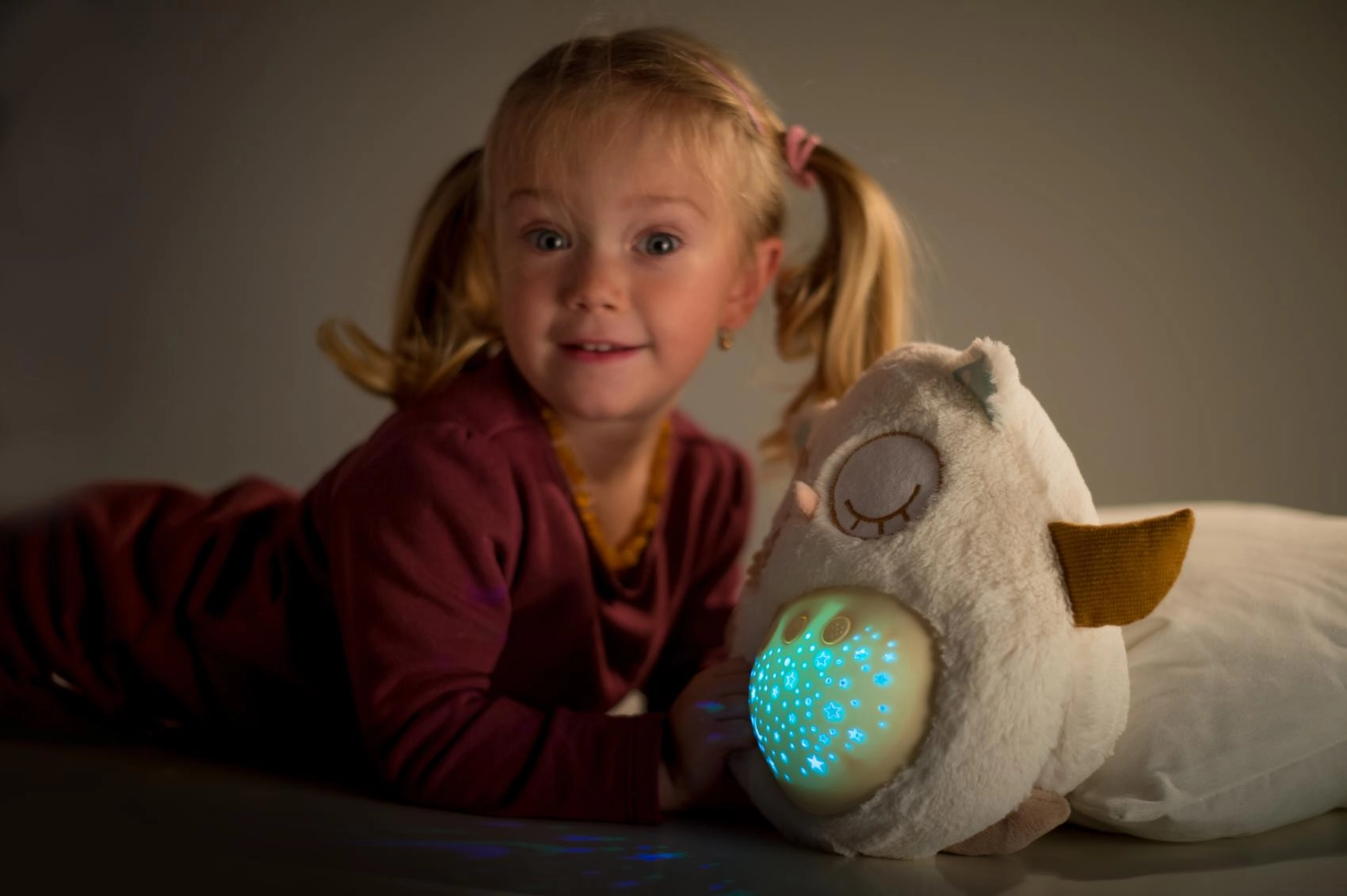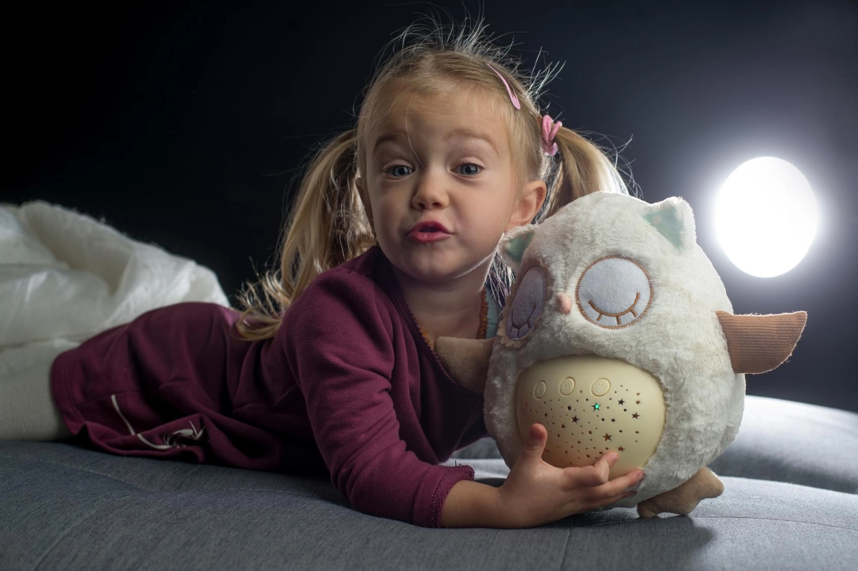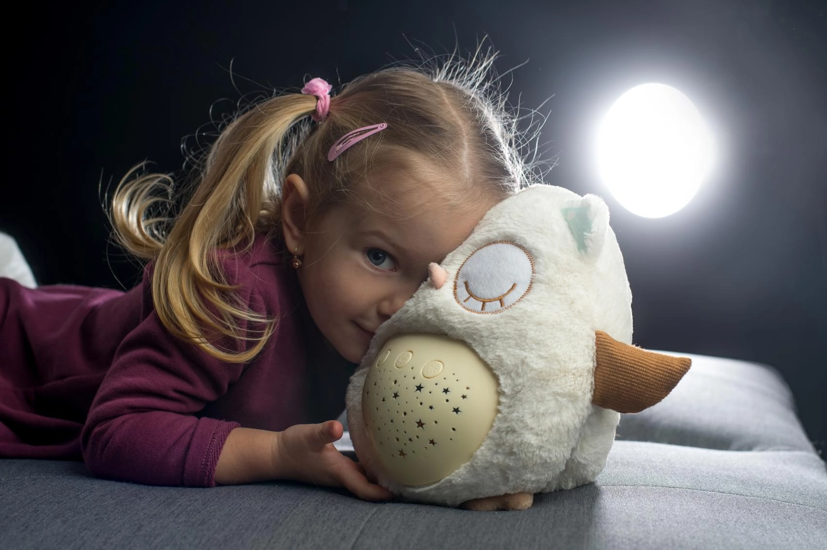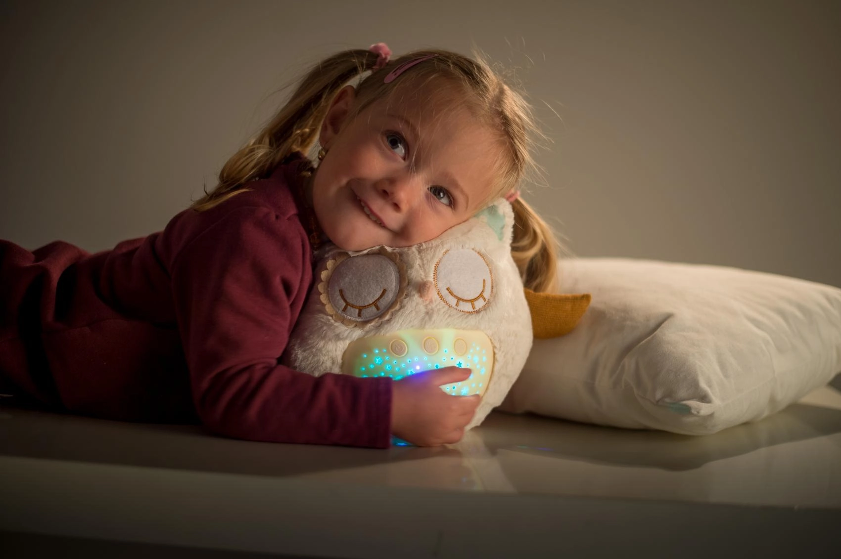 El manejo es sencillo gracias a los botones en la barriguita, por lo que puedes ajustarlo incluso a oscuras. Gracias a su tamaño compacto, el buhito es ideal para la cuna y para llevar de viaje. El material suave y agradable invita a los mimos y ayuda a crear un tranquilo ritual nocturno.