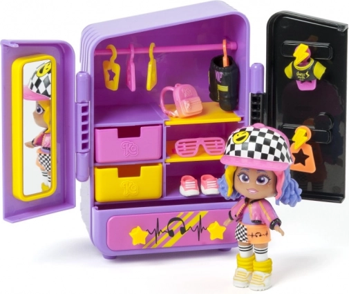 Sumérgete en un mundo de fantasía con el set de juego KookyLoos Mel, que aporta diversión y creatividad a cada momento de juego. El set incluye a la muñeca Mel, que ama el hip-hop y el baile. Con sus llamativos conjuntos, podrás preparar tu propia competición de baile o organizar un desfile de moda según tu estado de ánimo. El armario en elegantes tonos violeta y rosa te permite guardar todos los accesorios de forma ordenada. Cada partida es única gracias al cambio de expresiones faciales de la muñeca con un simple clic.