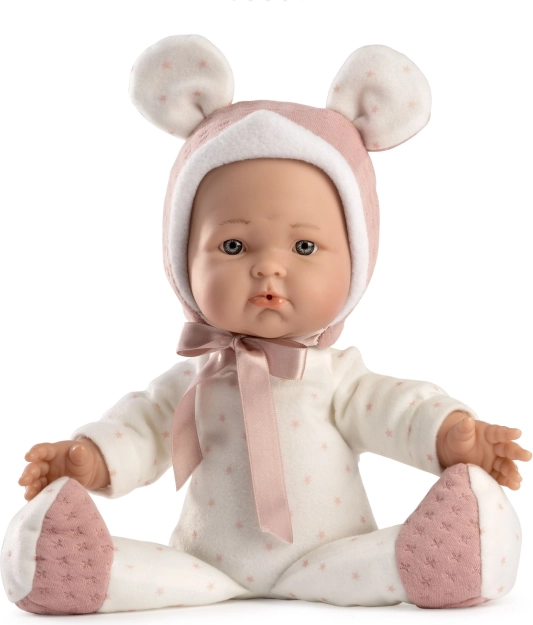 La muñeca es ideal para abrazar gracias a su cuerpo de tela suave, que transmite una sensación de delicadeza y comodidad.