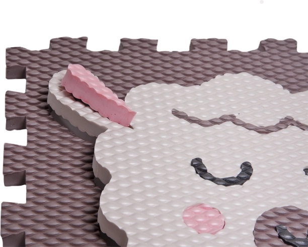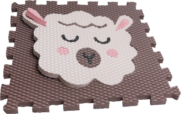 El puzzle de espuma con motivo de corderito en color marrón oscuro es ideal para salas de juego infantiles, dormitorios y salones. La superficie texturizada proporciona pisada firme, amortigua los impactos y protege del frío del suelo. Las piezas con encajes troquelados se ajustan con precisión y permiten montar rápidamente una zona de juego más amplia.