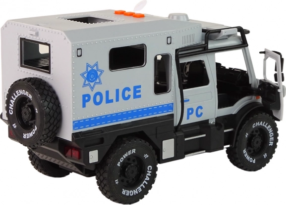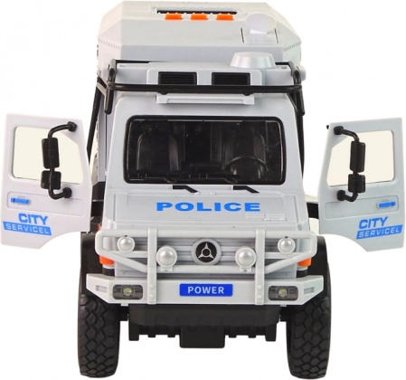 El vehículo todoterreno móvil de los servicios municipales está fabricado a escala 1:14, lo que lo convierte en un modelo extremadamente detallado. Está equipado con tracción de retroceso (pull-back): simplemente tira hacia atrás y suéltalo para que avance a toda velocidad.