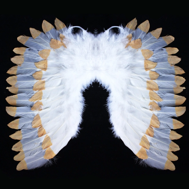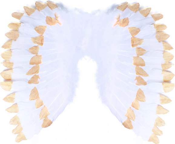 Elegantes alas de ángel con plumas blanco nieve y brillos dorados que complementan a la perfección un disfraz de ángel. Gracias a sus dimensiones de aprox. 67 × 46 cm, ofrecen un efecto llamativo y un uso cómodo para carnaval, San Nicolás y fiestas temáticas.