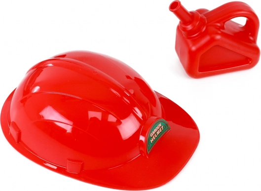 El set también incluye un casco de seguridad rojo y un pequeño bidón, que permiten a los niños imitar de forma segura las actividades de los adultos. Este juguete no solo aporta diversión, sino que también favorece el desarrollo de habilidades importantes como la coordinación y el equilibrio.