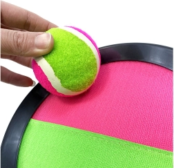 Disfruta de mucha diversión con un juego sencillo y adictivo en el que la pelota, al impactar, se adhiere a la superficie de la pala. Basta con despegarla fácilmente y el turno continúa. Gracias a la correa ajustable en la parte posterior, podrás adaptar las palas al tamaño de tu mano, por lo que se ajustan de maravilla tanto a niños como a adultos.