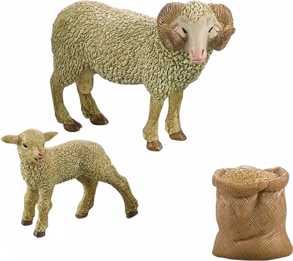 La figura del carnero en este set presenta una textura de lana realista y cuernos curvados, ideal para fines educativos o colecciones de coleccionista.