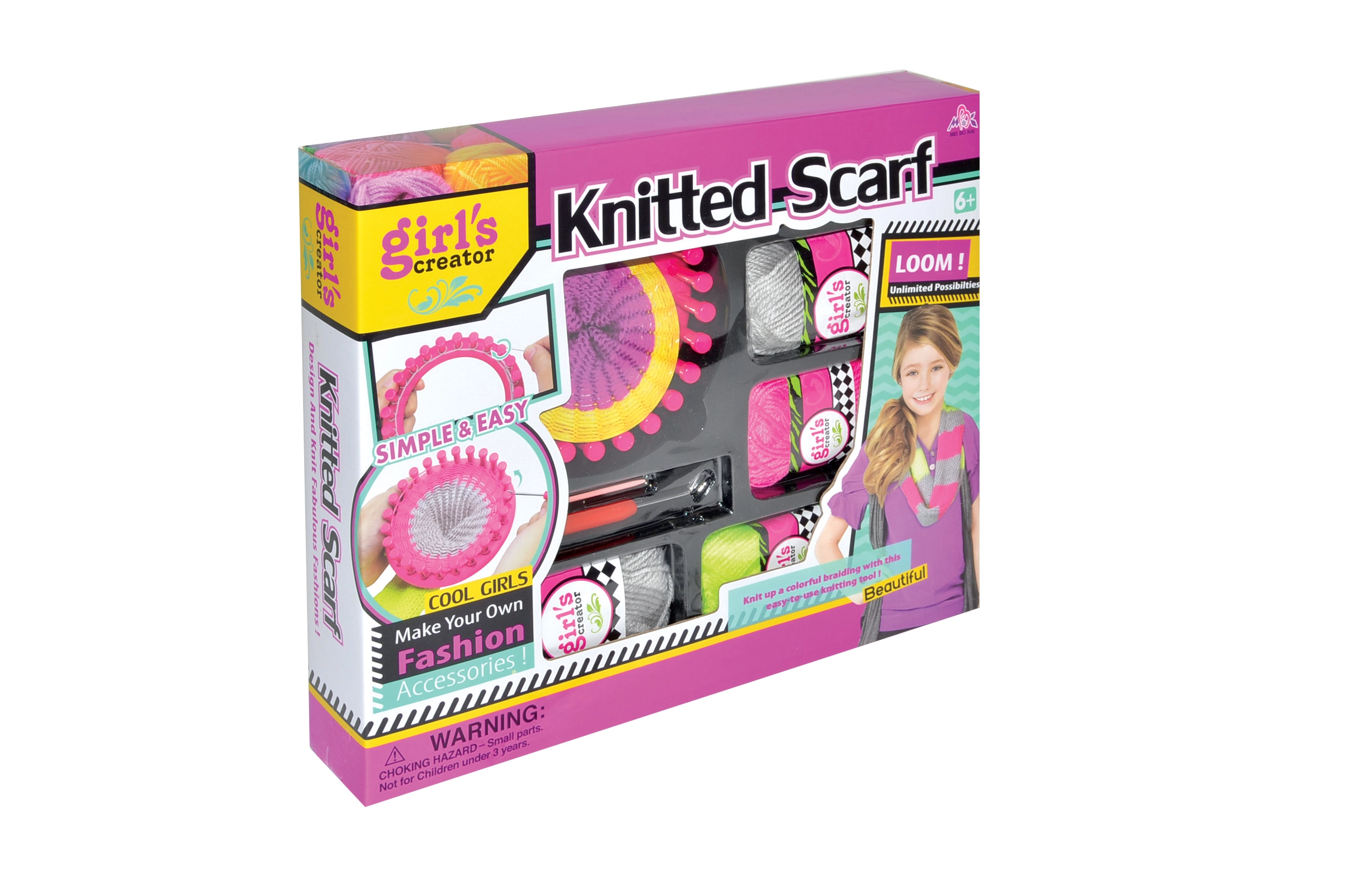Descubre la alegría de crear con el telar Scarf Design: una forma sencilla de fabricar en casa una bufanda original y otros accesorios. Ideal para principiantes y pequeños creadores: el proceso es intuitivo, divertido y los resultados son rápidos. Utiliza los ovillos incluidos o reemplázalos por tus tonos favoritos y crea un accesorio de moda único con diseño propio y estilo personal.