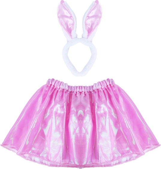La falda rosa brillante y la adorable diadema con orejas llaman la atención a primera vista. ¡Perfecto para ocasiones especiales y fiestas de disfraces!
