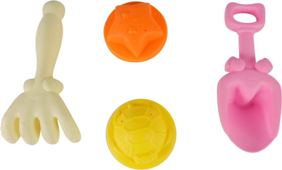 Incluye cubo, pala, rastrillo, dos moldes y un molinillo, una combinación ideal para juegos en la arena.