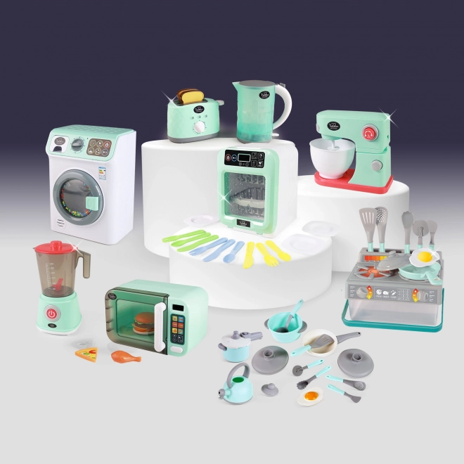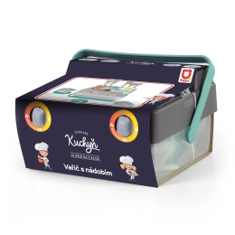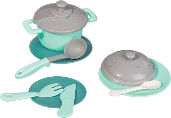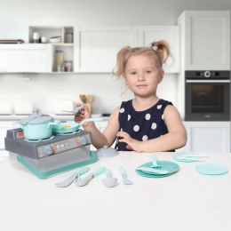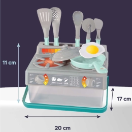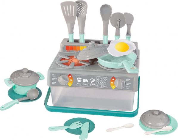 Este set de cocina infantil en color gris y turquesa contiene todo lo que los niños necesitan para jugar a ser cocineros. El set incluye: