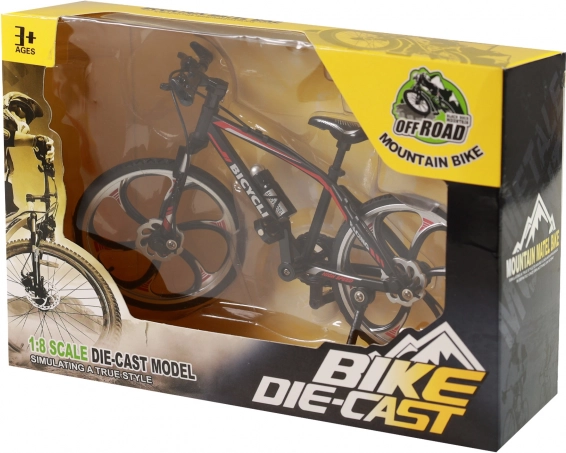 Descubre la mini bicicleta de montaña meticulosamente elaborada en elegante color negro con acentos rojos. Este modelo metálico con ruedas de movimiento libre imita fielmente una bicicleta real: desde el cuadro y el manillar hasta las llamativas llantas. Es ideal como regalo para amantes del ciclismo y como decoración para la mesa o la estantería.