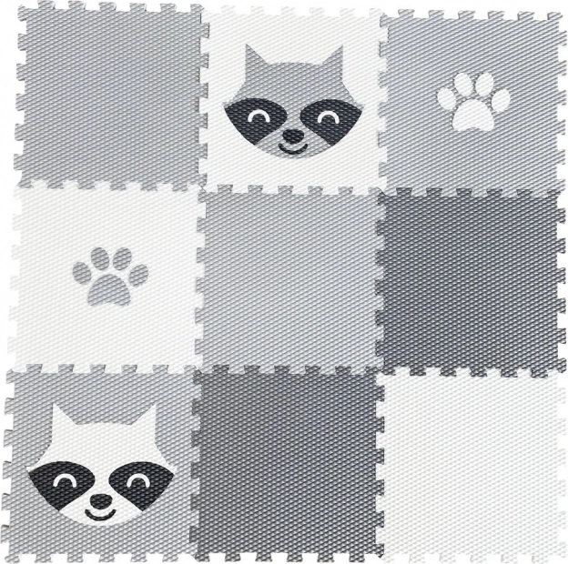 Esta alfombra de juego con motivos de mapache y huellas convierte cualquier habitación infantil en un lugar seguro y suave para jugar. Montaje fácil y sencillo gracias a los bordes entrelazados y al material resistente.