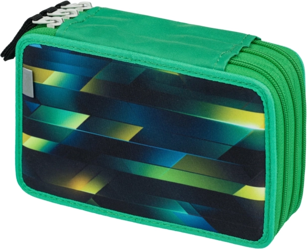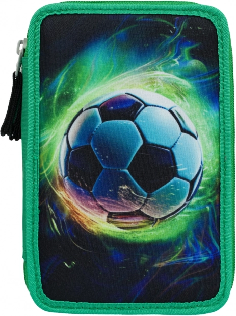 El estuche escolar de tres pisos con diseño de balón de fútbol ofrece espacio extra para todo el material de escritura, incluidas ceras y rotuladores gruesos, gracias a las gomas adaptadas. Está equipado con cremalleras de calidad y cuenta con lomo reforzado para una manipulación sencilla.
