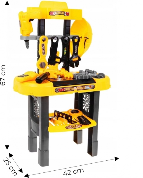 El banco de trabajo está hecho de plástico seguro y está destinado a niños a partir de 3 años. Proporciona muchas horas de diversión y juego educativo.