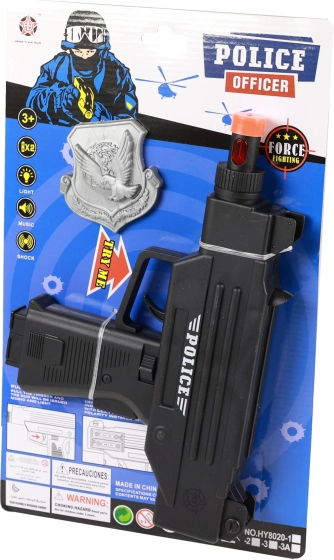 Equipa al pequeño policía con un estupendo subfusil que aporta luz y sonido para una experiencia de juego aún más auténtica. Gracias a la llamativa punta naranja queda claro que se trata de un juguete seguro, y el set incluye también una placa policial para completar el papel.