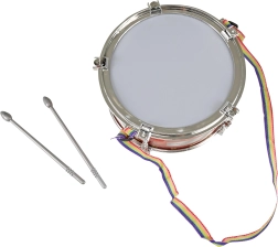 El tambor infantil con baquetas es un excelente complemento para cualquier joven músico. Con una correa colorida para el hombro y dos baquetas, se convierte en el instrumento musical ideal para llevar. Con el tambor, los niños pueden formar parte de una banda de marcha o tocar en casa.