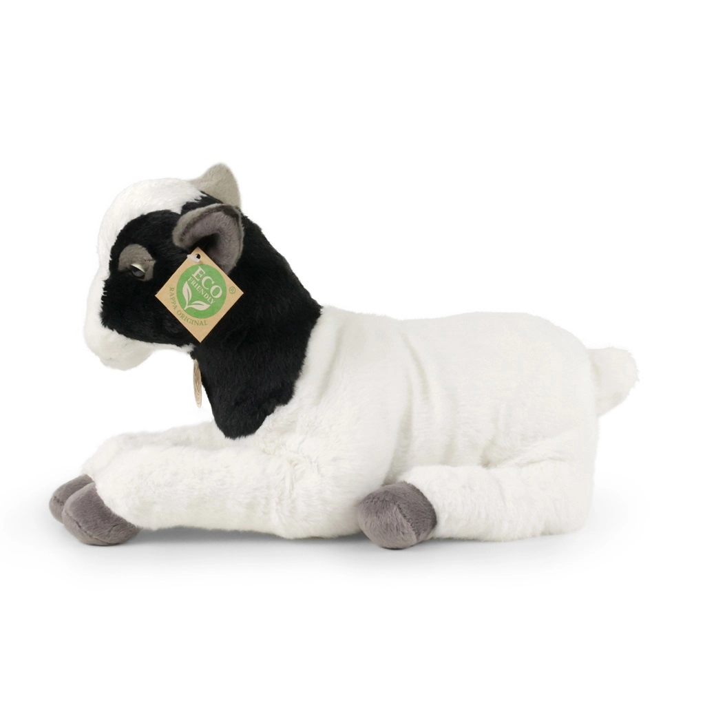 Adorable cabra de peluche de 30 cm, cosida a mano con material de alta calidad y suavidad excepcional, con un aspecto muy realista. Ideal como regalo para niños y amantes de los animales. Gracias al relleno ECO‑FRIENDLY de botellas PET recicladas, además es respetuosa con la naturaleza. Destaca por su acabado realista, peluche suave y diseño seguro para los más pequeños.