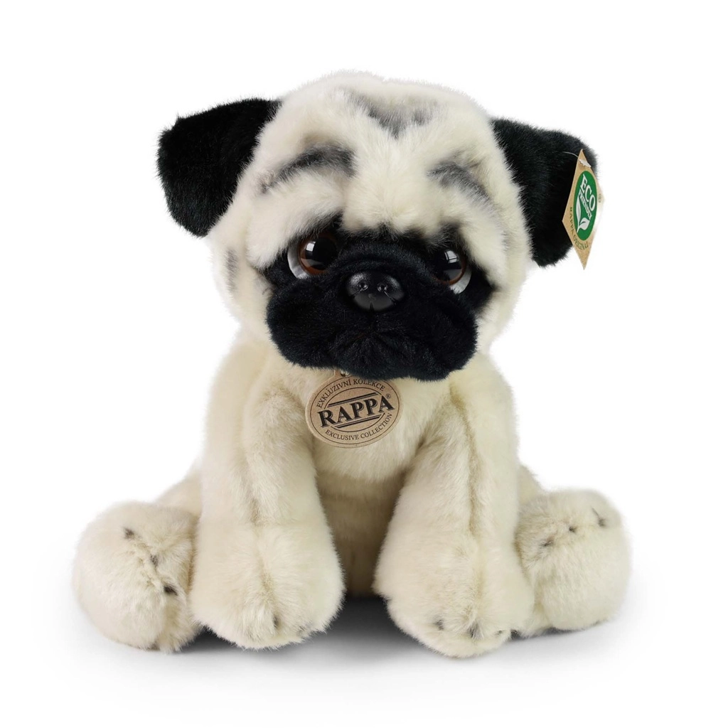 RAPPA apuesta a largo plazo por la sostenibilidad: el relleno de botellas PET recicladas es al tacto indistinguible del relleno común, está totalmente certificado y es seguro incluso para los más pequeños. Si buscas un juguete de peluche seguro y ecológico, el carlino de 30 cm es una excelente elección para la habitación infantil o como un bonito regalo.