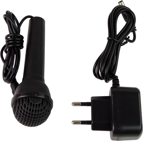 - Teclado, micrófono, soporte para partituras, cable de alimentación