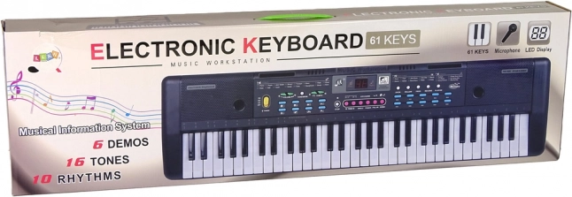 Desarrolla el talento musical de tu hijo con este teclado electrónico infantil con 61 teclas, micrófono integrado y soporte para partituras. Ofrece 6 canciones de demostración, 16 timbres, 10 ritmos, 8 sonidos de batería, 2 modos de aprendizaje, grabación, control de volumen y tempo y llamativas luces LED, ideal para un aprendizaje divertido y conciertos en casa.