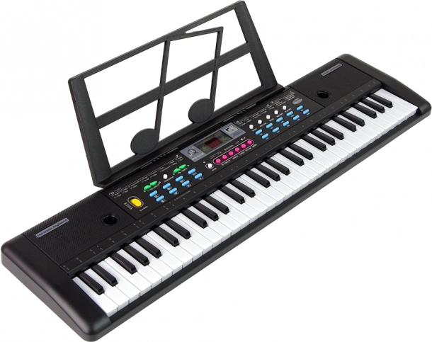 Este teclado ligero y portátil para niños es una excelente opción para dar los primeros pasos en el mundo de la música. Las teclas suaves y fáciles de manejar cuidan las muñecas, y su diseño ergonómico garantiza una interpretación cómoda. Gracias al micrófono, los pequeños músicos pueden cantar sus canciones favoritas y, con el soporte para partituras, tendrán letras y notas siempre a la vista.