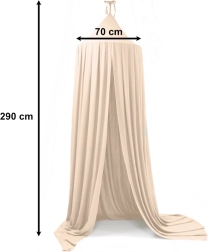 Un elegante dosel colgante en color beige transforma la habitación infantil en un lugar acogedor para jugar y dormir. La tela ligera y las generosas dimensiones crean una agradable sensación de privacidad y aportan encanto al interior. En el paquete encontrarás también los elementos de montaje necesarios, por lo que la instalación es fácil y rápida.