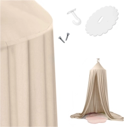 El dosel beige es ideal como refugio tranquilo sobre la cuna, rincón de lectura o escondite infantil. La tela suave y aireada aporta elegancia y combina con la mayoría de estilos de decoración de habitaciones infantiles.