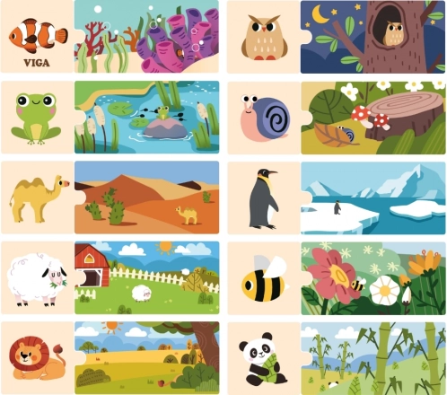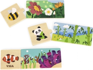 Estos puzzles lógicos de la marca VIGA son una herramienta ideal para desarrollar el pensamiento lógico y la imaginación de los niños. El juego consiste en unir correctamente 20 piezas de colores que, en conjunto, forman imágenes de animales y su entorno natural. Cada pieza está cuidadosamente fabricada en madera y cubierta con pintura no tóxica, lo que asegura una larga vida útil y seguridad para los niños.